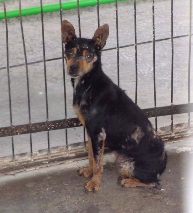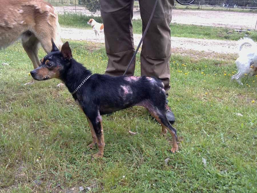 La sacaron in extremis unas horas antes de su sacrifico y fue a recuperarse a la residencia de animales abandonados PICO CHAPARRAL en su misma casa debido a su estado tan grave donde se la diagnostico de leishmania sin afectación en daños internos irreversible.