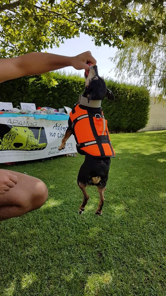 Y en medio de esta historia entro yo…vi esa foto del principio tan horrible de 3 meses antes y en ese mismo momento escribí a la asociación… quería acogerla pero como ya estaba acogida solo era la opción de adopción y mi marido me vio tan envuelta en el mar de lagrimas que dijo que adelante y nos pusimos en marcha a pesar de que solo querían adopción cerca de Madrid (vivo en Guadalajara) fui tan pesada enseñando fotos de mi casa y de mi zona y vídeos de absolutamente todo que les convencí por agotamiento ja ja ja, y yo muerta de miedo porque pensaba que tendría una larga lista de adoptantes…ilusa yo, que nadie quiere animales enfermos o tullidos…bueno en fin…