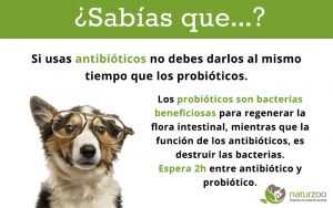 Si usas antibióticos no debes darlos al mismo tiempo que los probióticos. Los probióticos son bacterias beneficiosas para regenerar la flora intestinal, mientras que la