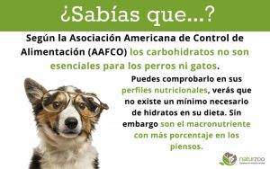 Según la Asociación Americana de Control de Alimentación (AAFCO) los carbohidratos no son esenciales para los perros ni gatos. Puedes comprobarlo en sus perfiles nutricionales,